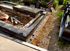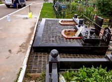 Приступаем к работе с цветниками. Один уже был в наличии, поэтому делаем второй, идентичный. По проекту цветники должны смотреться одинаково даже несмотря на то, что памятники будут разные. В это же время укладываем гранитную брусчатку уже на территорию места захоронения.